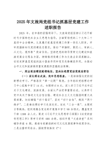 文旅局党组书记强化党建引领,夯实基层基础,推动党建工作与文化旅游深度融合,提升服务质量。下面是网友整理分享的2025年文旅局党组书记抓基层党建工作述职报告(资料)相关资料,供大家学习参考,喜欢就分享吧!