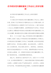 强调党风廉政建设重要性,提出加强学习、完善制度、强化监督等措施,如何确保有效落实?下面是网友整理编辑的在市政协党风廉政建设工作会议上的讲话提纲相关范文,供大家参考学习,喜欢就下载支持!