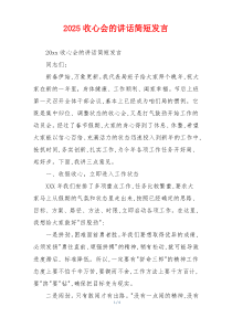 展望未来,明确目标,团结奋进,共创辉煌。以下由网友整理分享的2025收心会的讲话简短发言相关文档,供您学习参考,喜欢就分享吧!