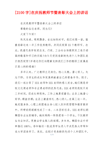 教师是人类灵魂工程师,对教育事业贡献巨大,应得到全社会尊重与支持。公文包网友为您分享整理的“[2100字]在庆祝教师节暨表彰大会上的讲话”范文资料,以供您参考学习之用,希望喜欢。