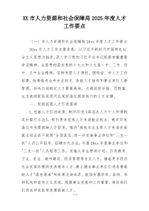 加强人才引进培养,优化服务环境,激发创新活力,推动高质量发展,如何更有效地落实这些措施?下面是网友整理编辑的XX市人力资源和社会保障局2025年度人才工作要点相关范文,供大家参考学习,喜欢就下载支持!