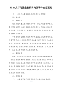 XX市支行制定预案,明确突发事件处置流程与责任分工,确保金融稳定和安全。以下由网友整理分享的XX市支行处置金融机构突发事件应急预案相关文档,供您学习参考,喜欢就分享吧!