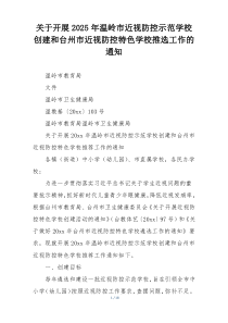 温岭市启动近视防控示范学校创建,同时推选台州市近视防控特色学校,具体要求和流程如何?下面网友分享多篇相关内容供您参考学习,希望有您喜欢的。