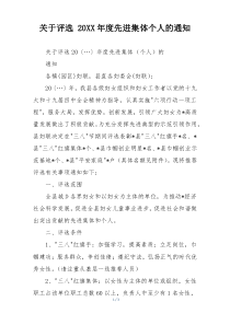 为表彰优秀,激励先进,现开展年度先进集体和个人评选工作,期待大家积极参与!以下是小编为您整理分享的“关于评选 20XX年度先进集体个人的通知”相关内容,供您学习参考!