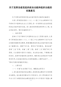 强调增强党组织凝聚力战斗力,提升治理效能,强化党员作用发挥,如何更好地实现这些目标?公文包网友为您分享整理的“关于发挥各级党组织政治功能和组织功能的实施意见”范文资料,以供您参考学习之用,希望喜欢。