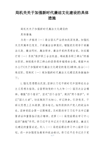 局机关通过强化教育引导、完善制度建设、加强监督制约、深化作风建设推进新时代廉洁文化建设。下面是小编为您整理的局机关关于加强新时代廉洁文化建设的具体措施范例,仅供参考,希望对您有所帮助。