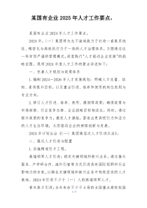 加强人才引进与培养,优化结构,提升素质,激发活力,构建高素质专业化人才队伍!下面是网友整理分享的某国有企业2025年人才工作要点,相关资料,供大家学习参考,喜欢就分享吧!