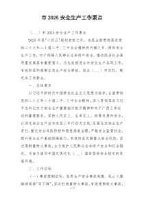 强化安全责任落实,推进风险防控体系建设,提升应急处置能力,加强科技支撑作用,如何确保安全生产形势持续稳定?下面是网友整理分享的市2025安全生产工作要点相关资料,供大家学习参考,喜欢就分享吧!