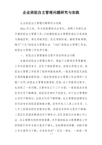 企业班组自主管理通过优化内部流程、激发员工潜能、增强团队协作,提升工作效率与质量,促进企业发展。以下由网友整理分享的“企业班组自主管理问题研究与实践”相关材料,便您学习参考,喜欢就分享给朋友吧!