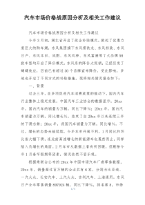 汽车市场价格战源于竞争加剧与需求变化,建议车企优化成本,提升产品竞争力,创新营销策略!公文包网友为您分享整理的“汽车市场价格战原因分析及相关工作建议”范文资料,以供您参考学习之用,希望喜欢。