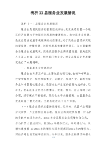 XX县服务业近年来稳步增长,产业结构持续优化,新兴服务业态不断涌现,对经济增长贡献显著。公文包网友为您分享整理的“浅析XX县服务业发展情况”范文资料,以供您参考学习之用,希望喜欢。