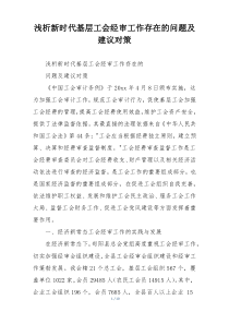新时代基层工会经审工作面临专业人才短缺、制度执行不严等问题,需加强队伍建设,完善制度建设,提升信息化水平。下面是网友整理分享的浅析新时代基层工会经审工作存在的问题及建议对策相关资料,供大家学习参考,喜欢就分享吧!