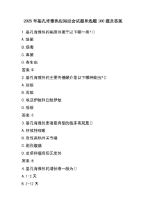 基孔肯雅热是由蚊子传播的病毒性疾病,常见症状包括发热、关节痛和皮疹,预防措施关键在于防蚊灭蚊。下面是网友整理分享的(资料)2025年基孔肯雅热应知应会试题单选题100题及答案相关资料,供大家学习参考,喜欢就分享吧!